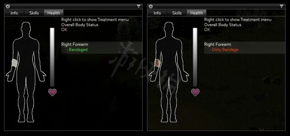最後是燒傷,作為游戲內最嚴重的傷口之一,燒傷需要立即使用清潔的紗布進行“傷口清理”,然後對傷口進行消毒後,用消毒綳帶包紮。你需要每天多次檢查傷口是否需要清潔,只有不斷清潔傷口,重新包紮,燒傷才會有慢慢癒合的可能。