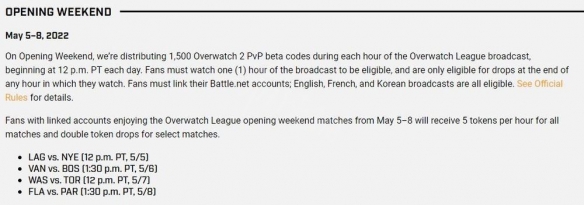 先前沒有獲得測試資格的小夥伴請注意:5月6日看OW聯賽也可以拿封測序號!