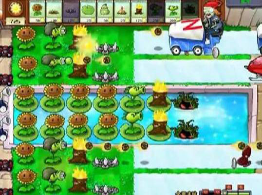 2.開局後兩排先種向日葵,土豆冷卻一好就下,壓力太大的話,可以用倭瓜和火爆辣椒幫忙;