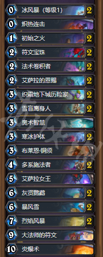 這套卡的基本思路:過牌過牌再過牌,在過牌之餘用各種法術解場,外加疊甲冰凍等苟活手段,暴風雪/呼啦+鸚鵡是控制場面的重要combo,然後再通過銅須+艾薩拉女王拿到兩個複製戒指,最後通過炎爆+兩個戒指的複製炎爆完成30血斬殺。