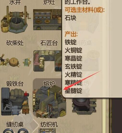 石匠台裡面進行生產,產出石頭,這樣就能構成建築熔爐的材料了。