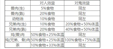 游戲中食物是維系玩家生存的重要道具,肉類可以動物屍體上獲取,只需將篝火或放在爐子上烹調,也可以吃生肉!各食物收益如下: