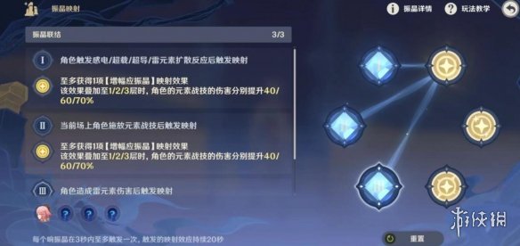 ◇上半場就一個八重神子,主要依靠神子的元素戰技來打輸出,所以振晶映射全部點第一個(見上圖)