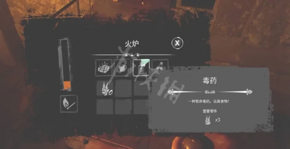 在DreadHunger這款游戲中,玩家想要製作毒葯的話,需要找到火爐,然後使用木頭或者煤炭點燃火爐,最後使用3個乾燥的葯草即可在火爐處製作毒葯了。