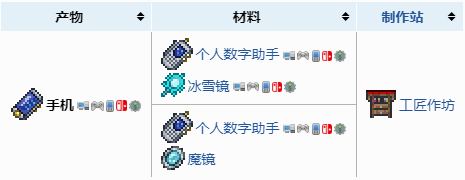 手機可以通過用個人數字助手與冰雪鏡或魔鏡在工匠作坊處合成獲得。