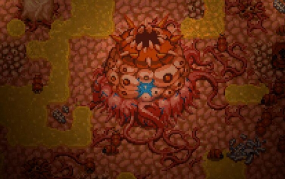 在面對這一切的時候,一定要快速作出反應,不然你就會被無窮無盡的酸性黏液和幼蟲所淹沒,毫無還手之力!我們建議各位玩家穿上高級護甲,帶上大量的治療藥水,在條件允許的情況下,甚至還可以跟別人一起組隊去挑戰這個頭目。