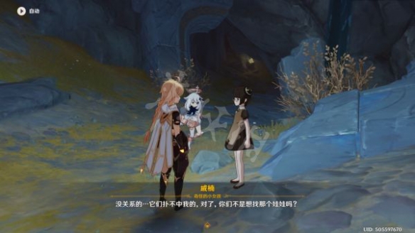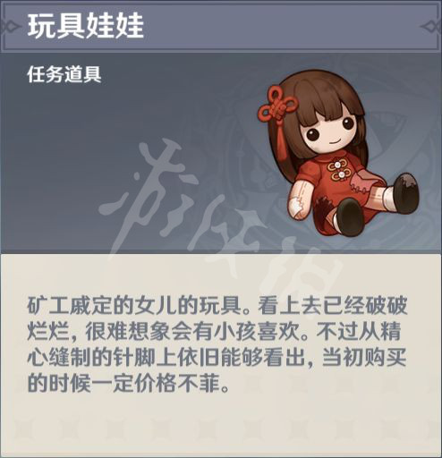 在無名遺跡這里,我們發現了一個在找玩偶的礦工,據他所說,玩偶是他好不容易才買回來要送給女兒的禮物,但現在弄丟了不知如何是好,於是派蒙不忍心,想要幫忙找找。