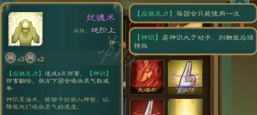 防禦端也很厲害,小迷蹤陣是公孫季會的,拍賣行也會刷,戰斗開始就放出來,加15閃避,然後引力,放夠幾次後可以隱匿術(神魂類法術找林沐心即可),靠回合自己疊塵,塵疊夠了,一個天星若雨完事,如果是白鹿這種爆發高的,可以用擾魂術,在引力沒疊起來前制衡。這樣戰斗到元嬰後期沒問題了。