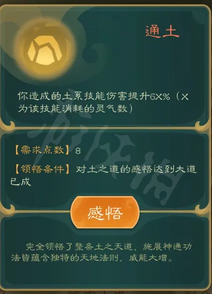 增強威力的功法有土系悟道第一排,最重要的是通土,因為每消耗80塵,相當於多消耗一點靈氣,假如有800塵,那就是10點靈氣,提升明顯。另外有以下幾個功法