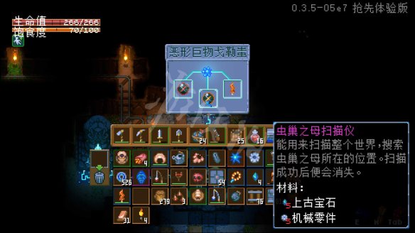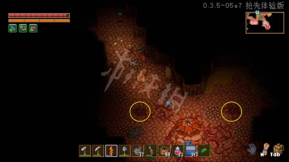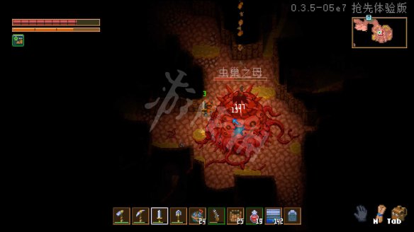 不主動攻擊蟲巢之母的話,它是不會發現玩家的。所以靠近後先不要驚動它,尋找分布在周圍的四個小蟲穴,利用之前收集的牆壁將這些蟲穴都圍起來。這樣開戰後,蟲穴里鑽出來的蠕蟲都會被圍在牆里無法攻擊到玩家。