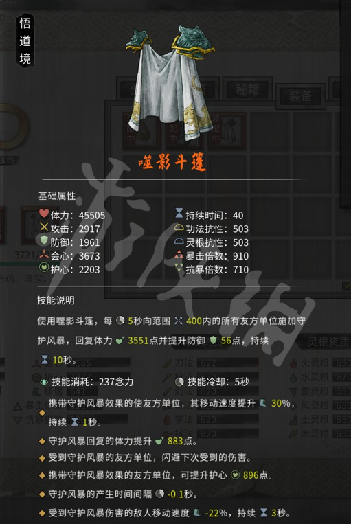 核心材料:風匿袍。