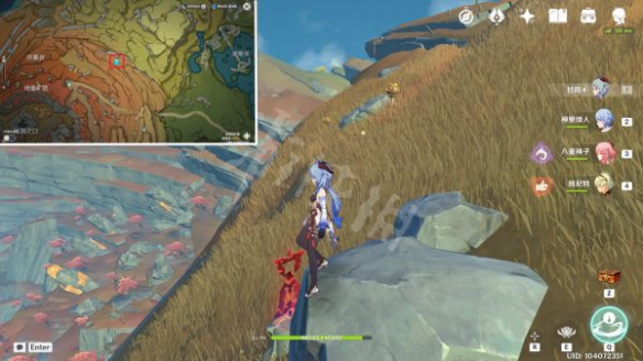 中間注意躲避斧丘丘人和岩史萊姆。