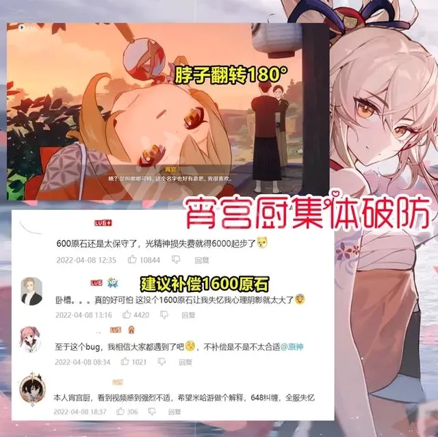 近期還發現了一件讓宵宮廚集體破防的事情,起因是位玩家在過任務時遇到了奇葩bug,這個歪頭殺bug甚至讓這位玩家嚇得不輕,按常理來說這種bug一般是出現在npc上,很難會在主角色上,所以不少玩家紛紛表示讓米哈游趕緊補償原石獎勵。