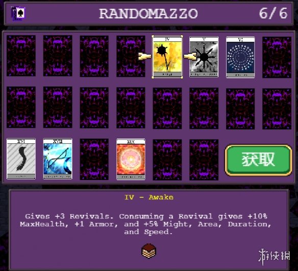 卡牌4:+3次復活。消耗一次復活可以獲得+10%的最大生命值、+1護甲和+5%的力量、範圍、持續時間和速度。