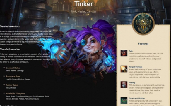 另外,修補匠搭配的種族也可能會有限制,就像7.0版本的DH一樣。比如聯盟方的侏儒,部落方的地精等等。