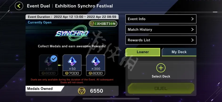 遊戲王大師決鬥自今年一月推出以來第三次活動,機智上挺坐牢的,之前自爆杯和平卡杯速度刷完一萬分就撤退了。這次同調杯就不一樣了,有沒有水百更加坐牢的同調玩法,獎勵池還更深。這次同調要刷兩萬分,除了鑽石廁紙,有兩個裝飾類獎勵,最後一個在兩萬深牢,希望廣大玩家堅持到最後。