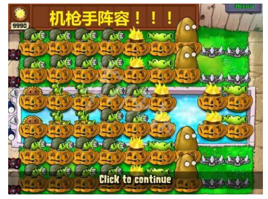 如果你是植物大戰殭屍“無盡模式”大佬級別的玩家,看到下方的陣容就知道一定是不行的。可作為新手玩家的你們一定認為這是最強的過關陣容,滿配的機槍射手再加上火炬樹樁,從外表來看無懈可擊,可巨人殭屍一拳一個小朋友。