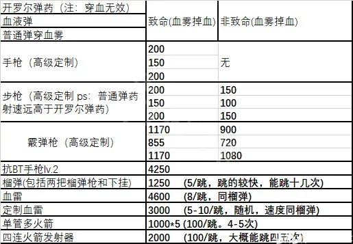 下面是實測的武器傷害數據,大家可以根據自己喜好設計或排除相應戰術。
