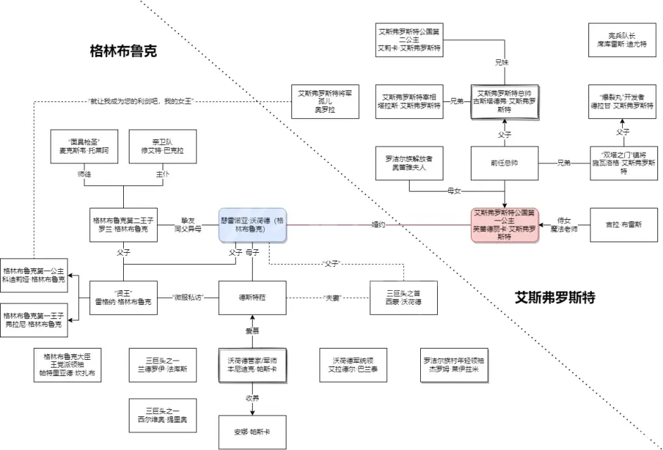 格林布魯克與艾斯弗羅斯特公國之間的主要人物關係圖: