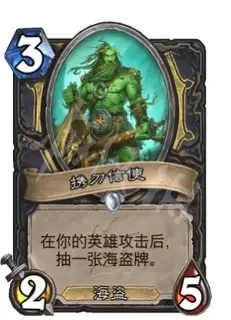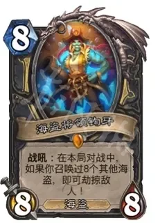 一張海賊王體系的大核心,對標海盜戰的洛卡拉,但區別在於,洛卡拉出到了五費,且海盜戰1234都有絲滑曲線;盜賊一次出到“8”,但目前的海軍分分鐘打到五六費就沒牌了,具體曲線也不如海盜戰的任務那麼絲滑。這使得海盜賊在相當長的時期里都有可能被一直晾著,而且如果沒有其他花里胡哨的東西,單次的戰吼在面對牛鬼邪神一堆的狂野時,其實也稍顯力不從心。