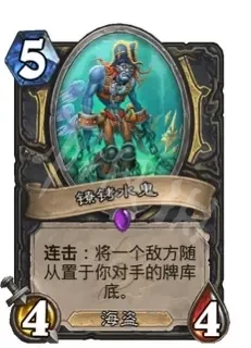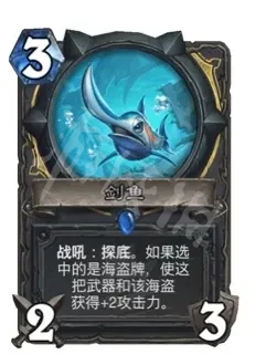 又是一張超大模的卡,但為什麼這么想不開要來盜賊的武器庫里拼就業呢?如果是傳統海軍,位置已經讓弒君給佔了;節奏賊那塊,連擊刀X狐狸的配合也牢牢佔住了他自身的地位;如果就上限而言,一把343+探底+海盜加攻的刀當然比得過連擊刀,但上限同時也是限制,即一套海盜有限的卡組是帶不了的。
