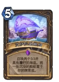 拜託,海盜船真的超酷的好不好?(然並卵)卡牌上限是四狼上警,快攻互掐潛行作用不大,控制卡組人手AOE,同樣意義不大。不依賴法術是五費出場太耽誤戰局。如果要配合伺機待發的話,同類例子有剽竊賊的雙面間諜,這么超模的3費雙33在狂野都打不贏海盜戰的3費,我覺得這張也不大行。