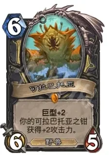 另外,依託於巨型的特殊設計,術師體系的亡語賊是能帶這張卡的,通過433的快速復制,來達到保住前期的目的,還算是能用的。