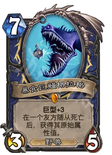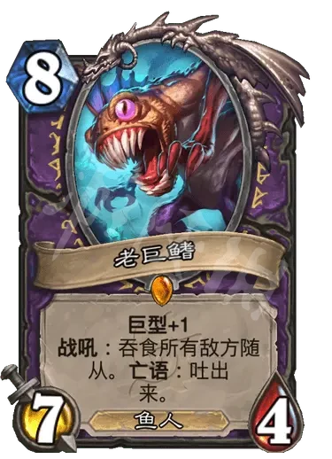 簡評:吞食就是臨時消滅,是觸發亡語的,同時衍生物亡語可以消滅吞食的隨從,可以當成一個單向扭,只要本體不被解就可以,同時衍生物具有嘲諷來站場,即使死了也會送掉吞食的隨從。