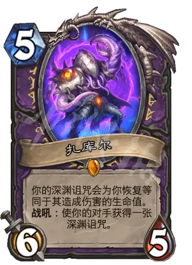 簡評:新體系,深淵詛咒,類似於拉法姆的詛咒,有回合限制,每過一回合傷害還會增加,這張牌就是配合這個體系來回血的,給對面塞一堆詛咒,對面持續掉血的情況下還可以提高自身的續航能力。