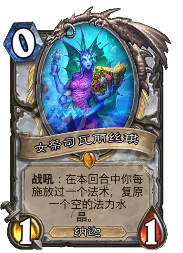 簡評:爐石第一張0費傳說,效果很假,牧師本身低費法術就多,還有很多減費牌,配合起來相當容易。