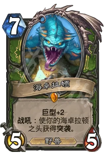 簡評:衍生物為31,亡語,海卓拉頓在場就可以召喚2個衍生物,本體在就可以無限套娃,同時本體戰吼可以給衍生物突襲,解場的同時還可以做出五頭海卓拉頓,強度還是可以的。