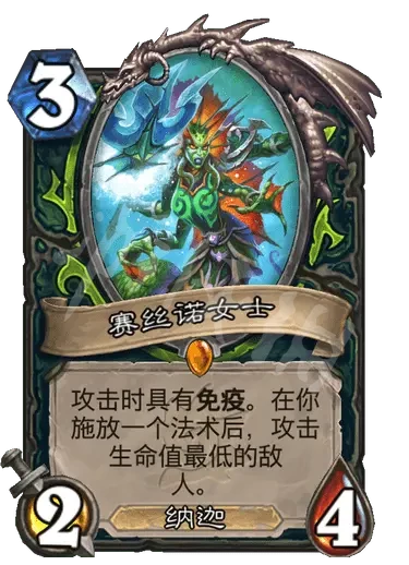簡評:效果類似1055國王,但上手率問題讓這張牌的下限很低,同時本身費用較高,高收益需要高費法術配合,限制較多。