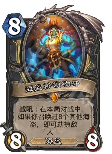 簡評:海盜體系補強,衍生物26嘲諷,亡語給發現的海盜同時變一費,運氣好可以發現3個重拳,一回合打出爆發傷害,整體強度取決於發現的海盜質量,本體就是個白板,衍生物可以站場護臉。