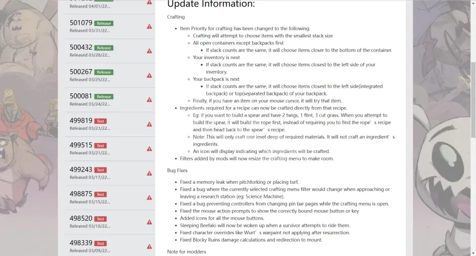 {修復了角色覆蓋,例如Wurt的戰漆在復活後不適用。}(完全沒看懂,沒遇到過)(原句:Fixed character overrides like Wurt’s warpaint not applying after resurrection. )