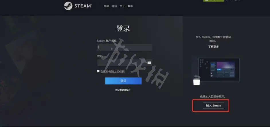 1、加速後進入steam官網,在登錄頁面點加入steam。