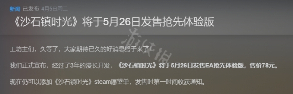 沙石鎮時光是一款國產的沙盒模擬游戲,將在今年5月26日正式上線。