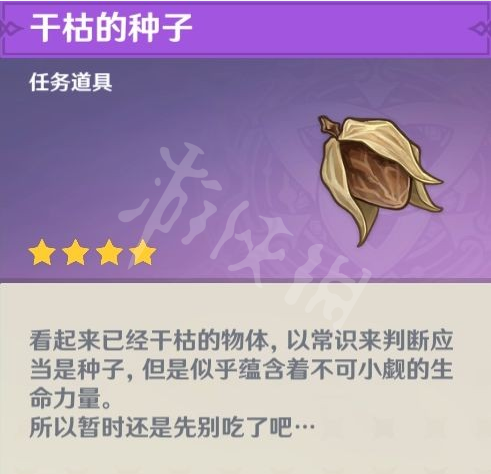開啟寶箱後會獲得任務道具「乾枯的種子」,並且解鎖天地萬象隱藏成就「生命之谷的居民」。