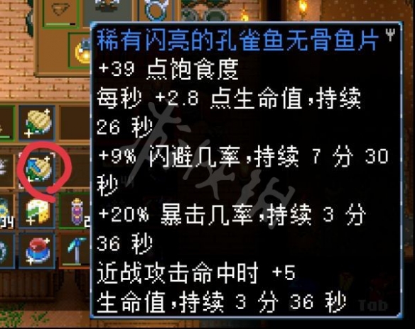 提供閃避、暴擊、吸血,材料是藍色孔雀魚和金色幼蟲肉,都是很容易獲得的。
