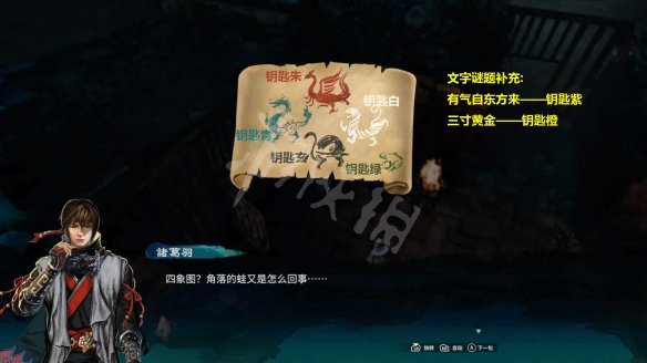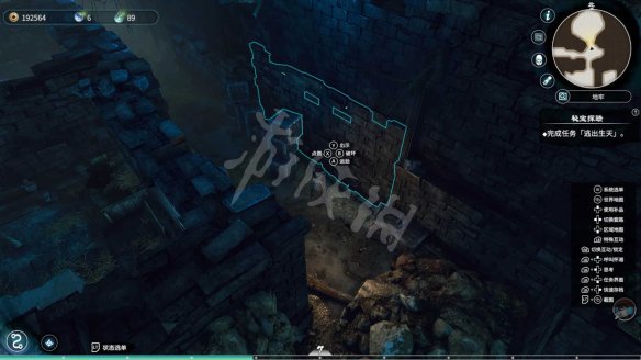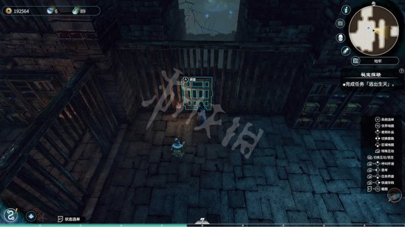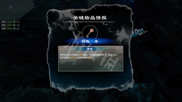 牢房對面的牆可以直接[運勁]破壞,進去以後將畫(必須是浸濕的)放到桌子上,然後調查木棺(選項全選),再將僅有的兩條情報合成後再次調查木棺可以學得心法【金雁神行】並拿到【鑰匙·白】。
