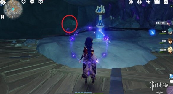 2、進入洞中後向右走,走到地下水澤處,從右邊開始繞上去到圖中紅圈處。