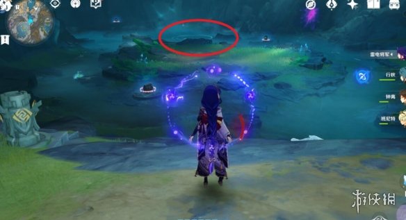 1、來到傳送點,朝著紅圈處進去。