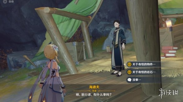 2、我們來到地下水澤釣魚點進行一次釣魚,釣到魚後我們退出釣魚後就會獲得一個道具【奇怪的物件】,我們拿著【奇怪的物件】來到營地找到海迪夫與海迪夫對話。