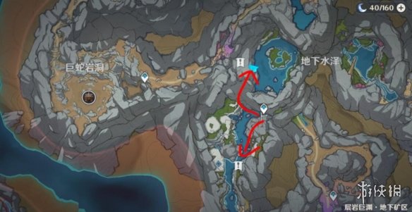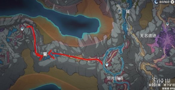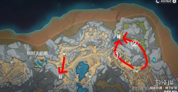 有兩個路線選擇,①號路線需要6級以上的流明石強度消除黑泥,②號就直接往下走到最底層就能找到。
