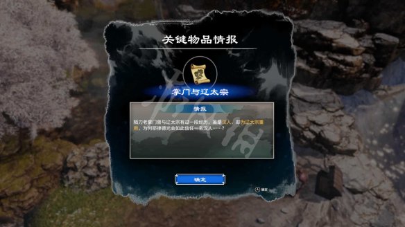 前往櫻花池與陌刀耆宿對話得知他需要幫助,將之前的【櫻花鐵片】拿去工作台[破壞]得到【金屬花瓣】,再將【金屬花瓣】對著櫻花池的寶箱[出示]觸發劇情,與耶律和琅對話中選擇【前任掌門...】,獲得情報【掌門與遼太宗】。