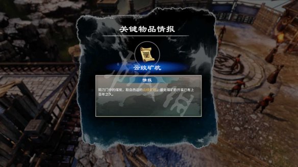 調查櫻花池的煤炭堆獲得情報【煤炭】,然後將其[出示]給工作台旁邊的陌刀匠師獲得情報【雲紋礦坑】。