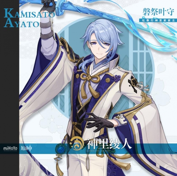 2.6 版本上線後,全新限定五星角色「磐祭葉守 · 神里綾人(水)」將在活動祈願「蒼流踏花」中迎來概率 UP。