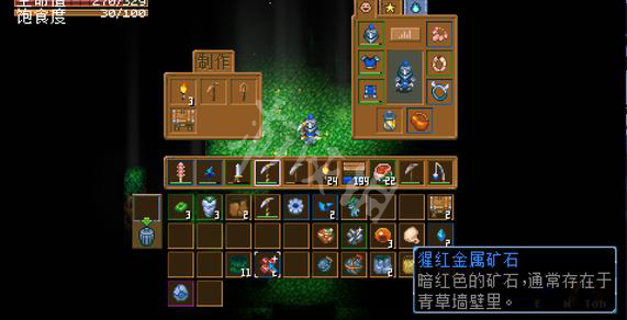 4、最後,開採到泥土層,即可獲得猩紅礦石。
