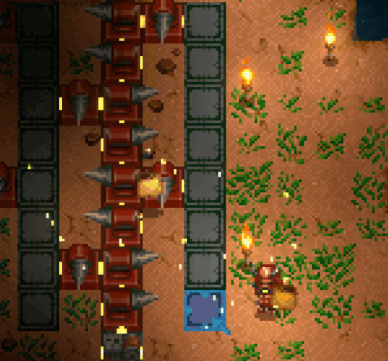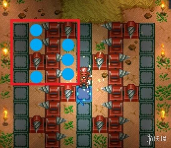 許多玩家可能沒有見過這種結構的樹場,因此附上運行圖示(用沙牆壁代替、模擬生長出的木頭):