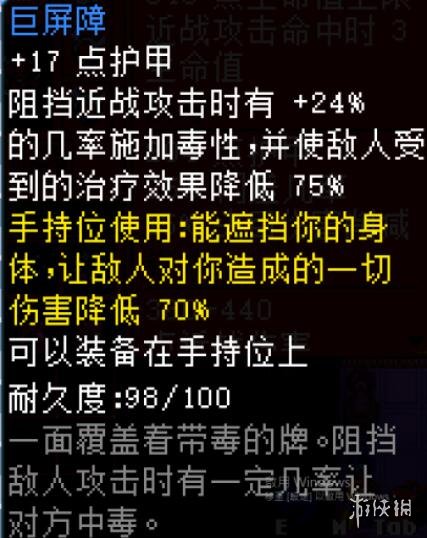手持道具盾,有毒盾更好增加更多護甲 (盾不用管方向進入格檔都能擋)