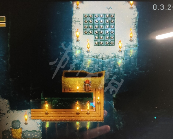 把薩滿房間挖空,門外也挖掉點,防止boss瞬移出門,如圖所示放地刺,房間朝向不同則相應旋轉地刺方向,接著沿牆壁搭橋,進門後搭一個2×3或者2×2的平台,平台不要搭太大,太大了boss會跳過來。